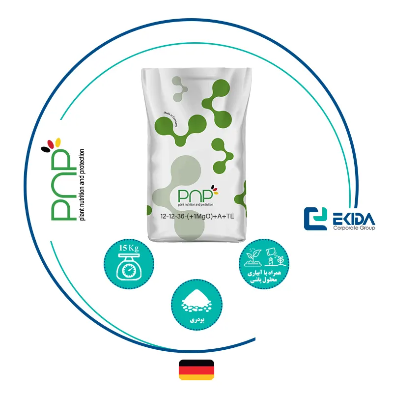 کود PNP 12-12-36+(1MgO)+AA+TE یک کود کامل با پتاسیم بالا است که به طور خاص برای مراحل رشد گیاهانی که نیاز به پتاسیم بیشتری دارند طراحی شده است. این کود علاوه بر تامین عناصر اصلی نیتروژن (N)، فسفر (P) و پتاسیم (K)، دارای منیزیم (MgO)، آمینواسیدها(AA) و عناصر ریز مغذی (TE) است که همگی نقش مهمی در رشد سالم و بهینه گیاهان ایفا می‌کنند.