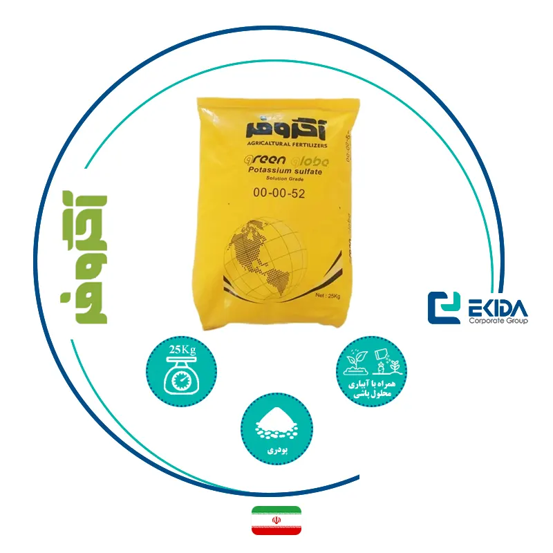 کود سولفات پتاسیم (سولوپتاس) اگروفر یک منبع غنی از پتاسیم (۵۲%) و گوگرد قابل جذب است که برای انواع محصولات زراعی، باغی و گلخانهای طراحی شده است. این کود فاقد نیتروژن و کلر بوده و از این رو برای گیاهان حساس به کلر مانند انگور، سیب، سیبزمینی و مرکبات بسیار مناسب است. پتاسیم از عناصر حیاتی و پرمصرف برای گیاهان است که در فرآیندهایی چون انتقال آب و مواد غذایی، سنتز پروتئین و نشاسته، فتوسنتز و تنفس سلولی نقش کلیدی دارد. این عنصر همچنین در تنظیم باز و بسته شدن روزنهها، حفظ فشار اسمزی سلولها و افزایش مقاومت گیاه به تنشهای محیطی مانند خشکی، گرما و بیماریها نقش مؤثری ایفا میکند.