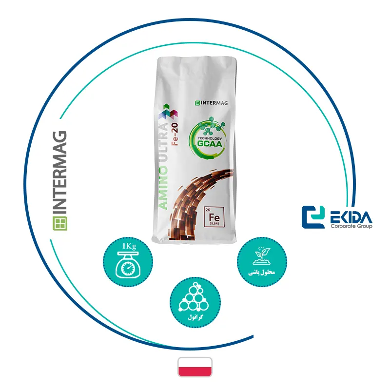 کود آمینو اولترا آهن اینترمگ یک کود شیمیایی می باشد که حاوی آهن و آمینو اسید گلایسین است. این کود به طور ویژه برای تأمین نیازهای گیاهی در مراحل مختلف رشد طراحی شده و می‌تواند به بهبود سلامت و رشد گیاهان کمک کند. گلایسین کوچک ترین و پرتحرک ترین آمینواسیدی است که موجب تسریع و جذب عناصر ترکیب شده با خود در بافت گیاهان می گردد.
